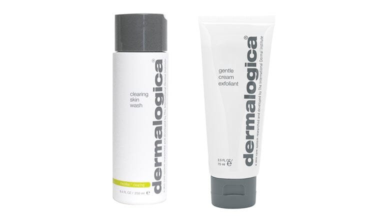 Back Pimple Treatments: Dermalogica MediBac Clearing Skin Wash, $49.50, and Dermalogica Gentle Cream Exfoliant, $54.50.